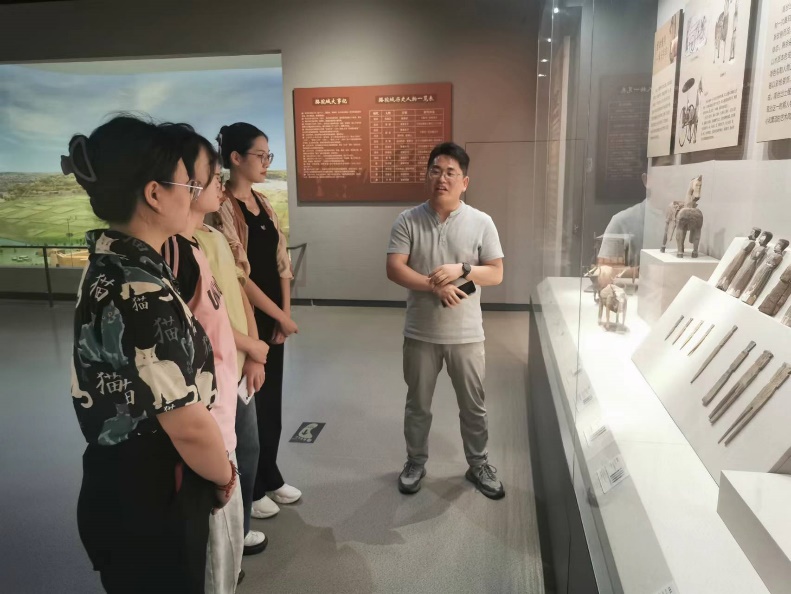 座谈结束后,吴兴翔老师带领4名实习学生参观了高台历史文化陈列。参观过程中,检测了实习学生对讲解词的熟悉程度,同时对部分馆藏文物进行了较为详细的介绍,启发学生思考“五凉文化”对高台历史文化的影响。