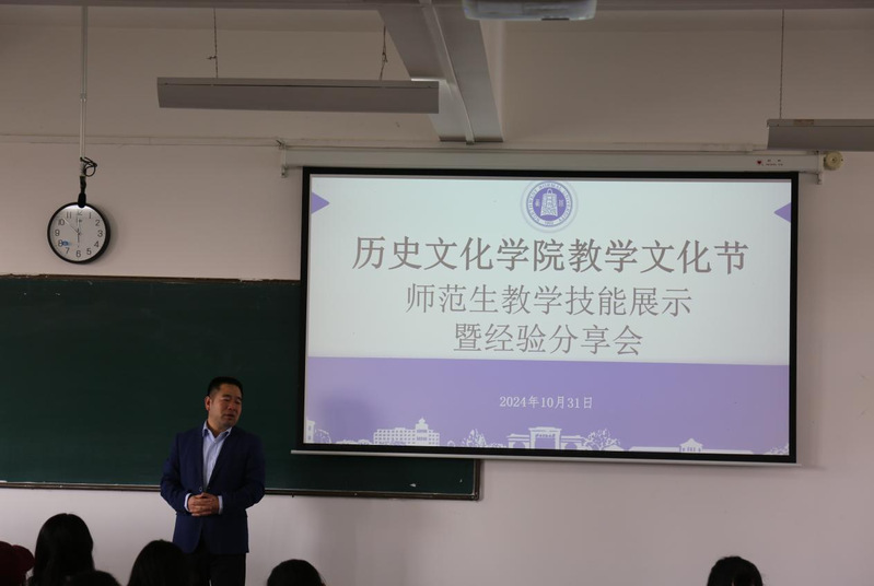 为深化教师教育综合改革,加强学风建设,切实提升历史师范生教学能力、综合素养。10月31日下午,欧博abg官方网站在田家炳教育书院506教室组织召开“教学文化节”——师范生教学技能展示暨经验分享会。分享会由张连银副院长主持,学院110余位同学参加分享会。